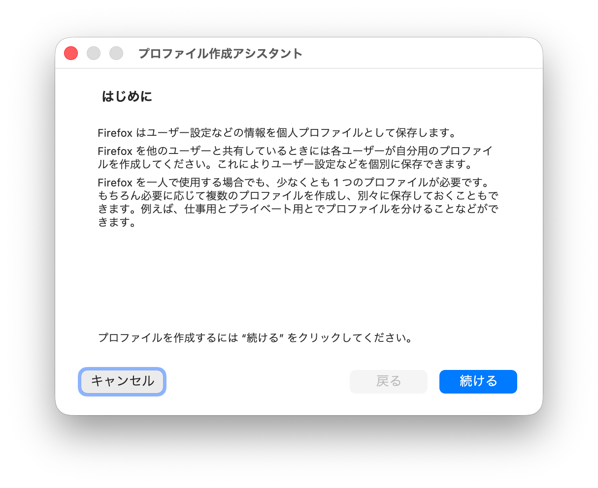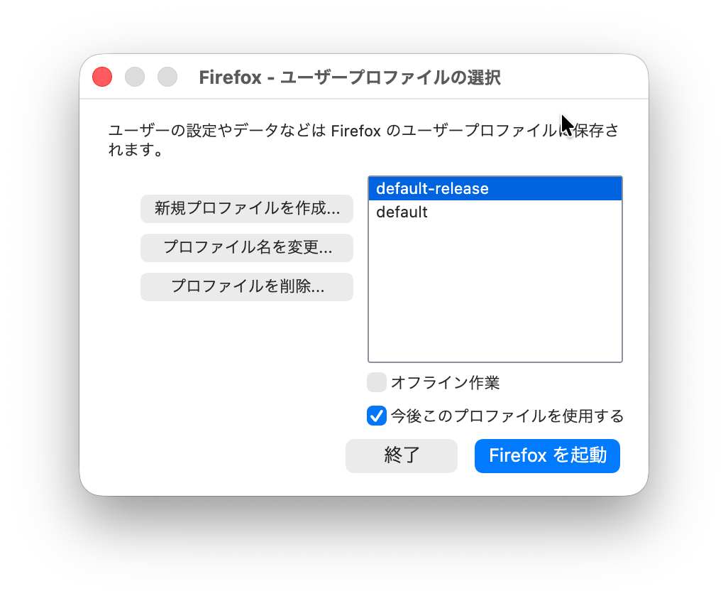 macOS で Firefox のプロファイルを作成する